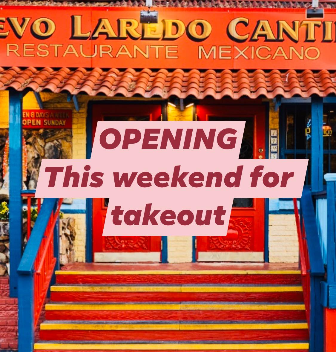 Nuevo Laredo Cantina as of Saturday, April 18 has reopened for takeout nearly two weeks after the popular Mexican eatery temporarily closed its doors April 6 in response to the COVID-19 pandemic, including suspension of all to-go service.