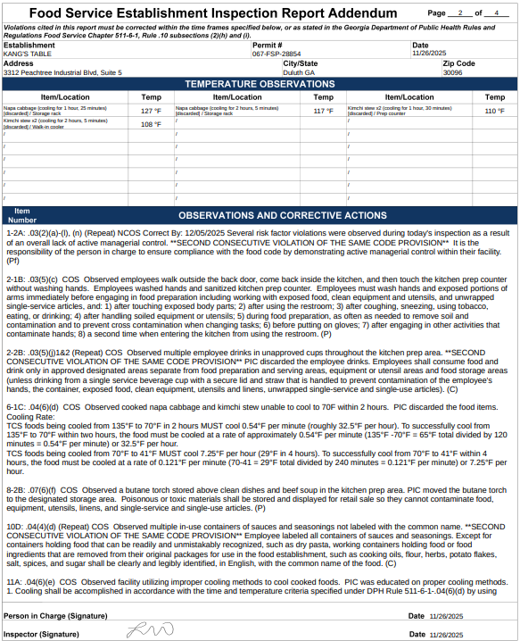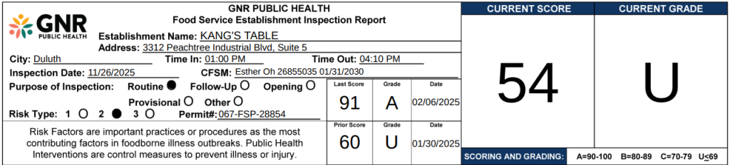 Kang’s Table in Duluth offers an authentic Korean dining experience to diners. However, inspectors found several violations at the restaurant and they are as follows: