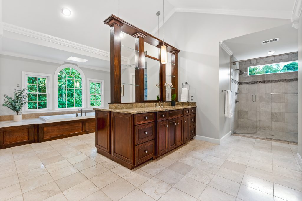 Upstairs, the primary suite serves as a calm retreat with a spacious sitting area and abundant natural light. The resort-style en suite bath includes dual vanities, a soaking tub, oversized shower, and dual water closets for added convenience. Secondary bedrooms are equally comfortable, each featuring an updated bath and ample storage.
