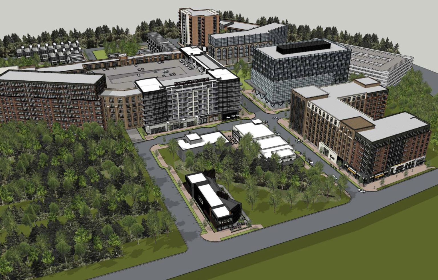 Here’s the breakdown (subject to change): restaurant/retail (135,000 square feet), office (302,000 square feet), a 120-room hotel, 40 townhomes and 650 multifamily units.
