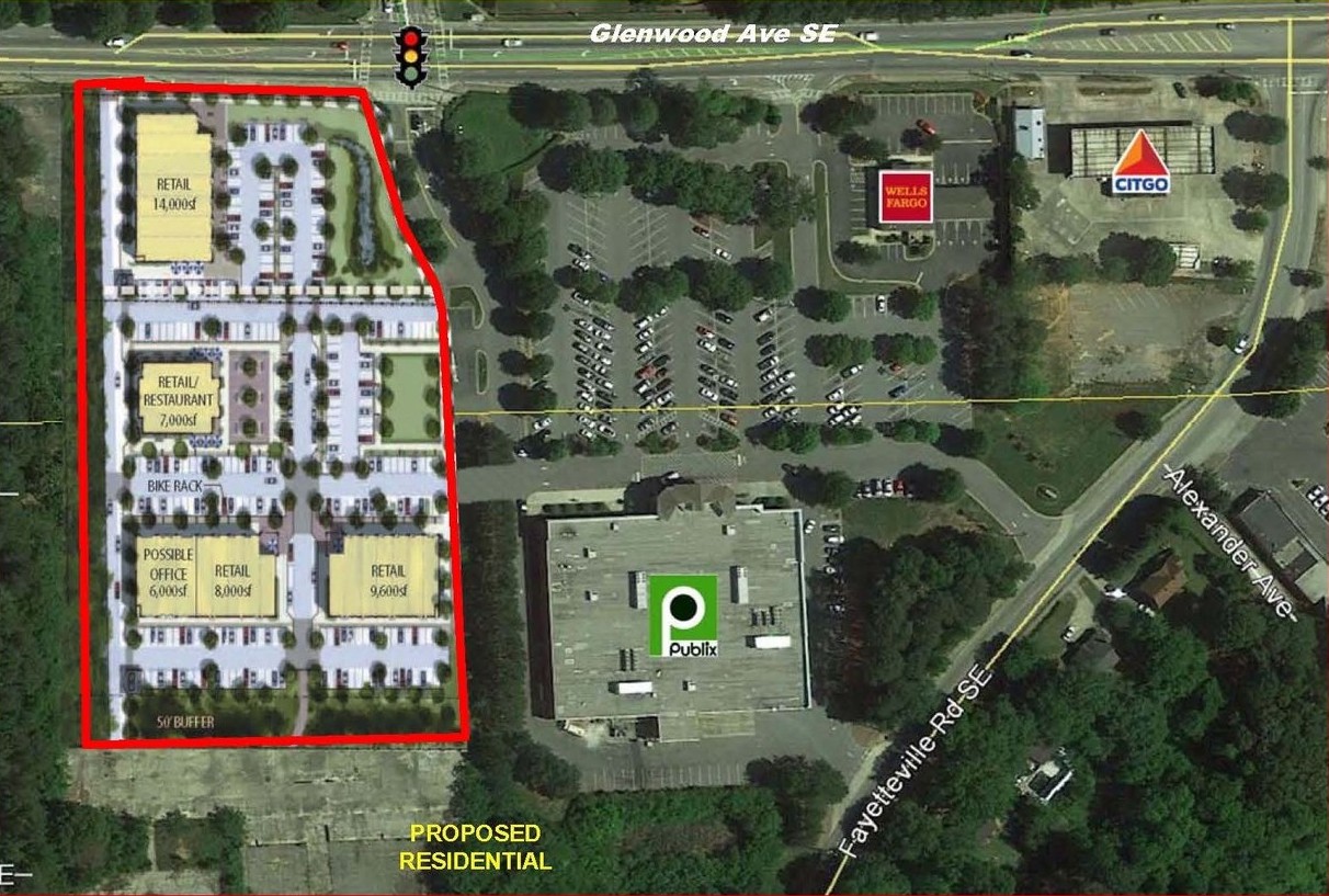 The community would be part of a mixed-use development located at the intersection of Glenwood Ave and Fayetteville Road, with 44,600 square feet of new retail development.