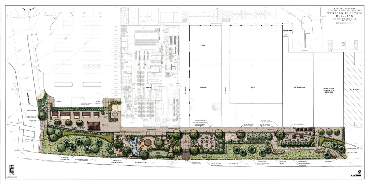 “The power lines along the entire property are being buried in order to maximize the scenic view of the Atlanta skyline from both the rooftops of Bazati and New Realm Brewing.”