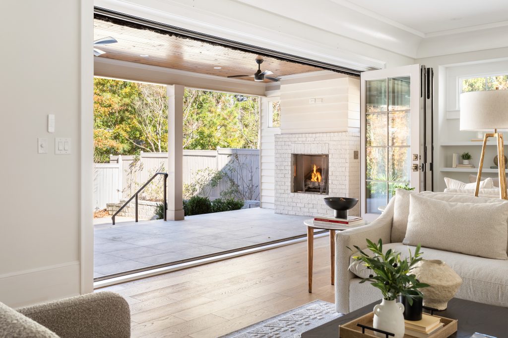 Accordion doors dissolve the wall between inside and outdoors, making the pool, patio, and outdoor fireplace feel like natural extensions of the home. A grilling deck, scullery, laundry room, and powder room sit quietly behind the scenes, keeping daily tasks effortless. The en suite bedroom adapts easily to guests or workspace needs, with a three-car garage completing this floor.