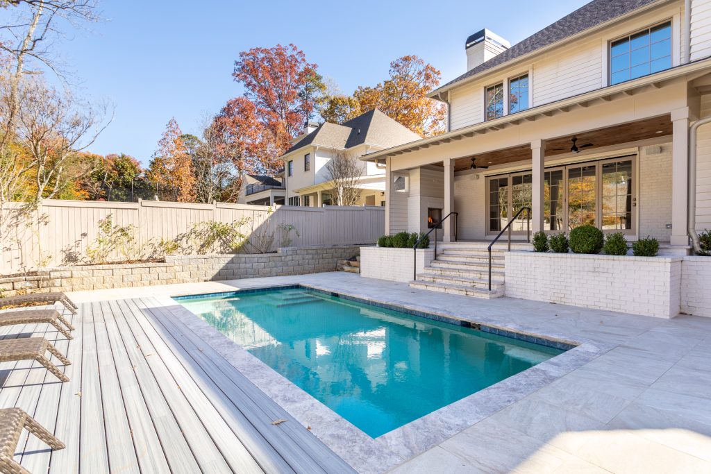 Outdoor living unfolds with ease behind the fence, where a pool and hardscaped seating areas offer a polished backdrop for weekend gatherings. Those wanting additional green space will find the landscape easily adaptable. A level front lawn and sidewalks knit the property into the fabric of the neighborhood.