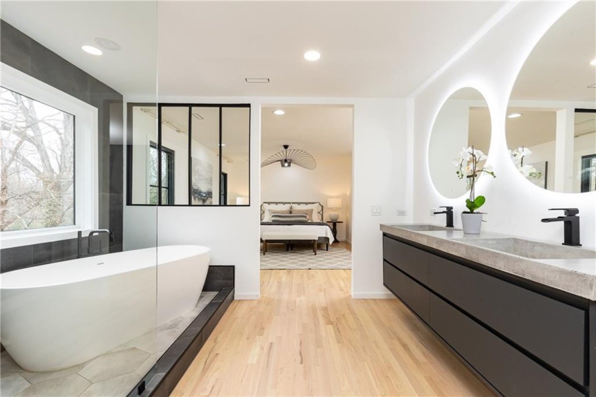 Fully remodeled with a European inspired, modern flare, this classic Peachtree Park cottage is an absolute must see. Spearheaded by Truist Taylor and Jones Pierce, the recent renovation added contemporary elements throughout the home, including a chic, open concept kitchen and living space, black iron finishings, and a fifth bedroom upstairs, along with refinishing all the bathrooms, and transforming the primary bedroom into a wet-room suite with a custom walk-in closet.
