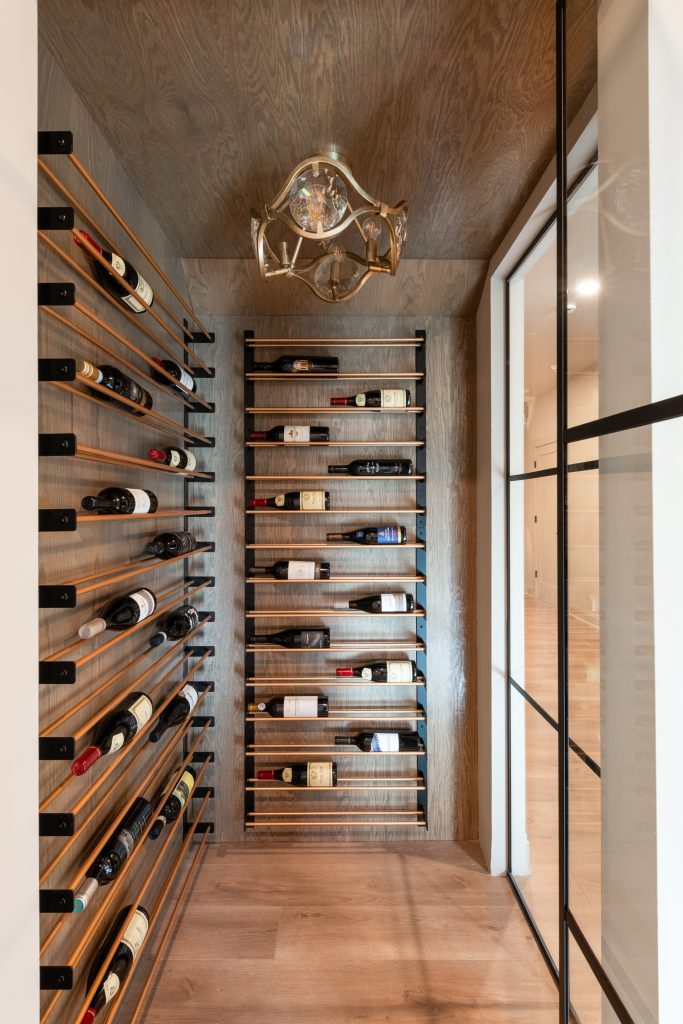 The terrace level extends the home’s usable space with another guest suite, abundant daylight, and touches that make entertaining effortless. A dedicated fitness room with rubber flooring and mirrored wall sits near the half bath. The lounge provides a wet bar with wine and beverage refrigeration, an ice maker, and glass-front cabinets. A custom wine display anchors the space visually. Pella sliding doors lead to a covered porch and a wide, level lawn, ideal for pets, a future playset, or outdoor gatherings.
