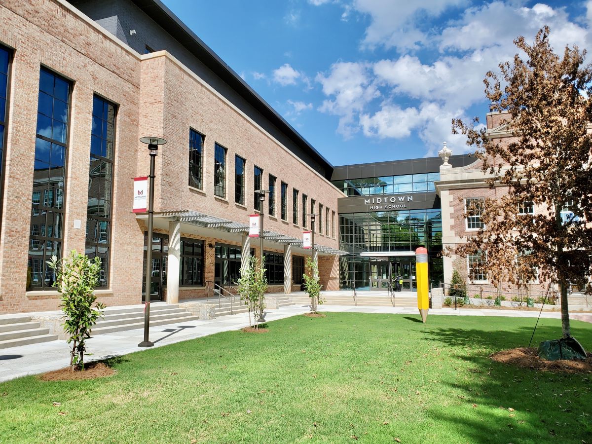 As students, parents and teachers alike brace for the school year to start amid the ongoing pandemic, Atlanta Public Schools has delivered some positive education news. Just in time for students to arrive for their first days of school, the district debuted its four-story, 63,000 square foot addition to Midtown High School on Thursday. The historic Charles Allen Building was also subject to significant restoration and integrated with the new building, all part of the project architects Cooper Carry‘s mission to “balance the old with the new.” Formally known as Grady High School, the school was originally constructed in 1923, and was later updated in 1949.