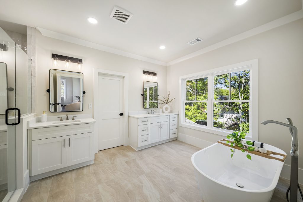 This residence offers approximately 4,730 square feet on a 0.42-acre lot, with 10-foot ceilings, hardwood flooring, six bedrooms, and five and a half baths. Dual primary suites, located on both the main and upper levels, provide flexibility for guests, extended stays, or multi-generational living.