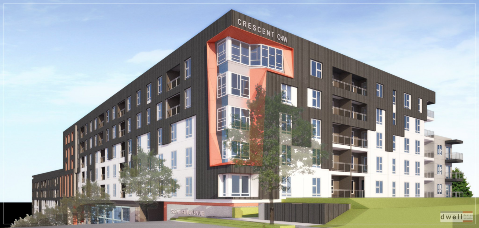 The project, at 525 North Avenue, includes a five-story residential apartment building with 240 units and 9,000 square feet of street-level commercial space.