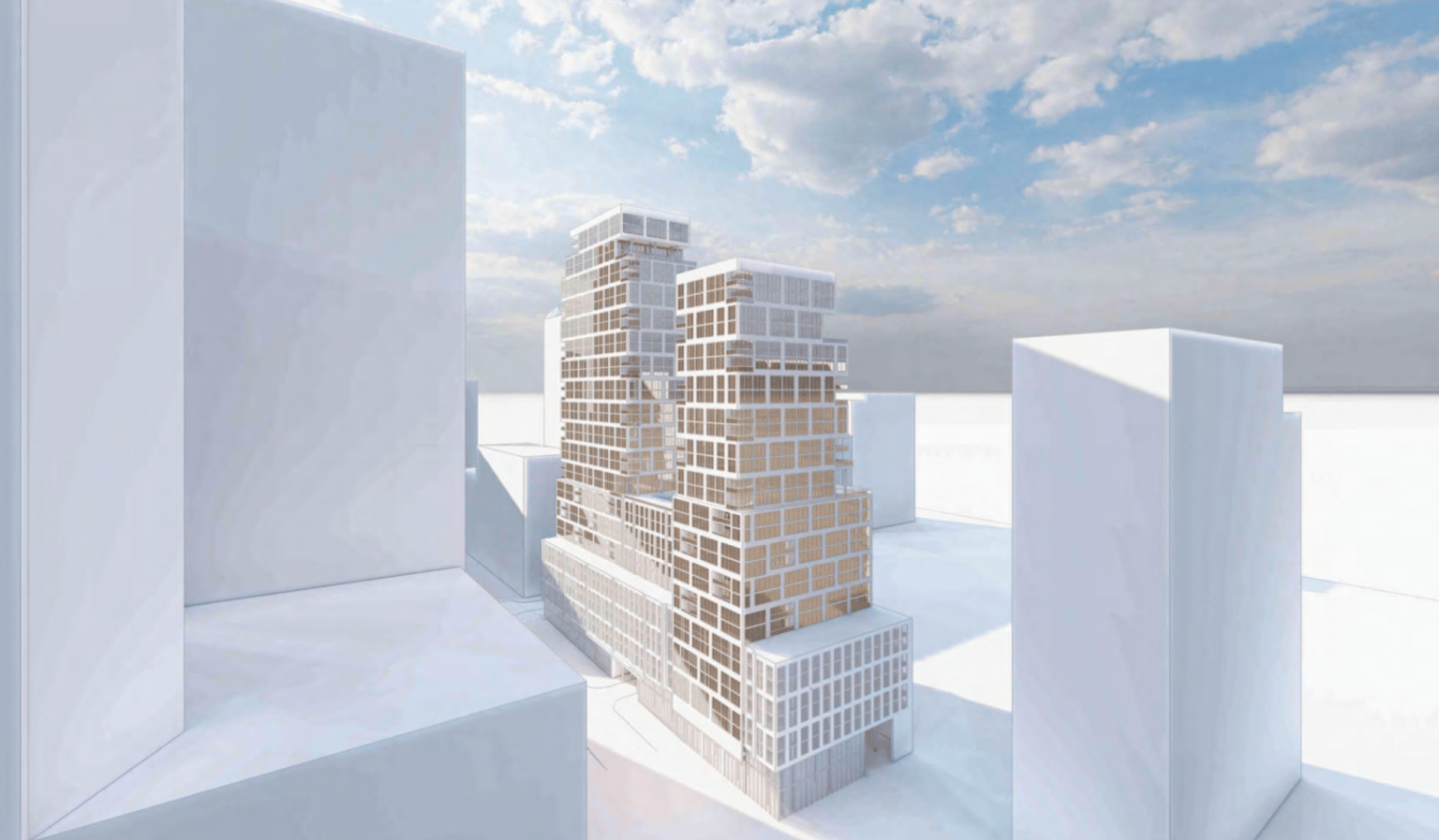 On the residential side, the project would include “a pretty even mix” of studios, one-bedrooms, and two-bedrooms, with three-bedrooms representing 5 percent of the total in accordance with zoning regulations, Hudgins said. The taller tower would reach a maximum height of 398 feet, plans show.