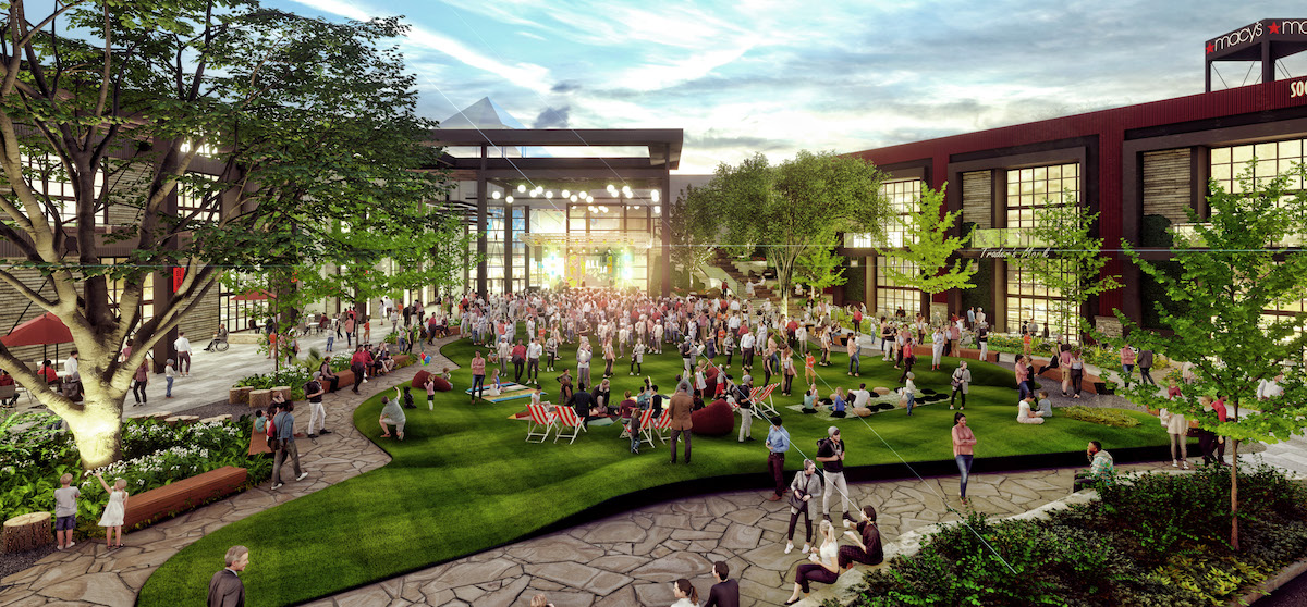 The first phase of the redevelopment encompasses 85,200 square feet of new retail, restaurant, and service space, a 50,000 square-foot retail/entertainment anchor space, a 15,000 square-foot food hall, 25,000 square feet of entertainment space, 25,000 square feet of creative office/coworking space and 320 for-rent multifamily residential units.