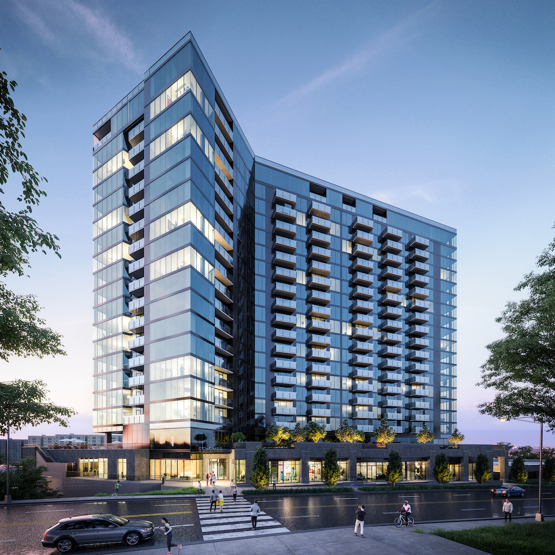 Amenities include a saltwater pool and deck, and 9,000 square feet of ground-level retail, restaurants and entertainment space.