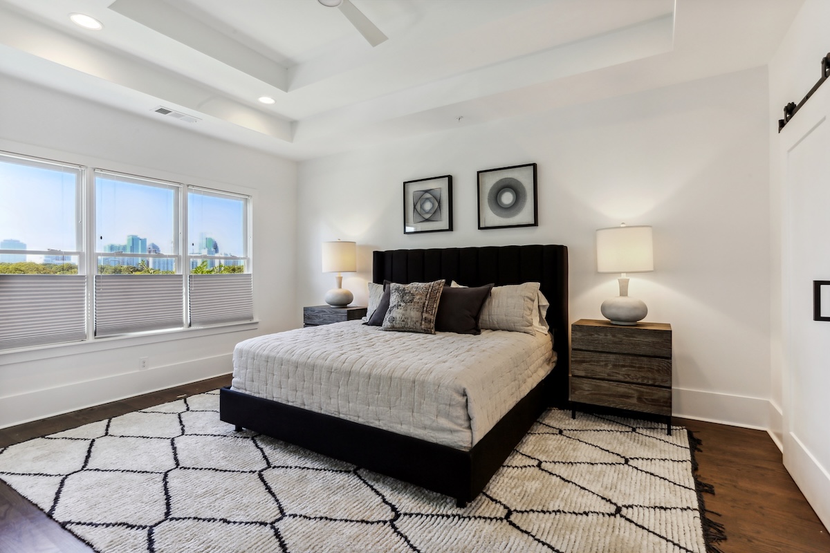 Adding to the property’s allure are its extensive exterior features, including a fenced backyard and a screened-in rooftop terrace that serves as an entertainment hub, complete with a fireplace, upgraded flooring, and lighting. This stunning retreat offers open views of Ponce City Market and the Midtown skyline. For added convenience, the property also includes a garage with parking for two cars, an EV outlet, and an exterior parking pad.