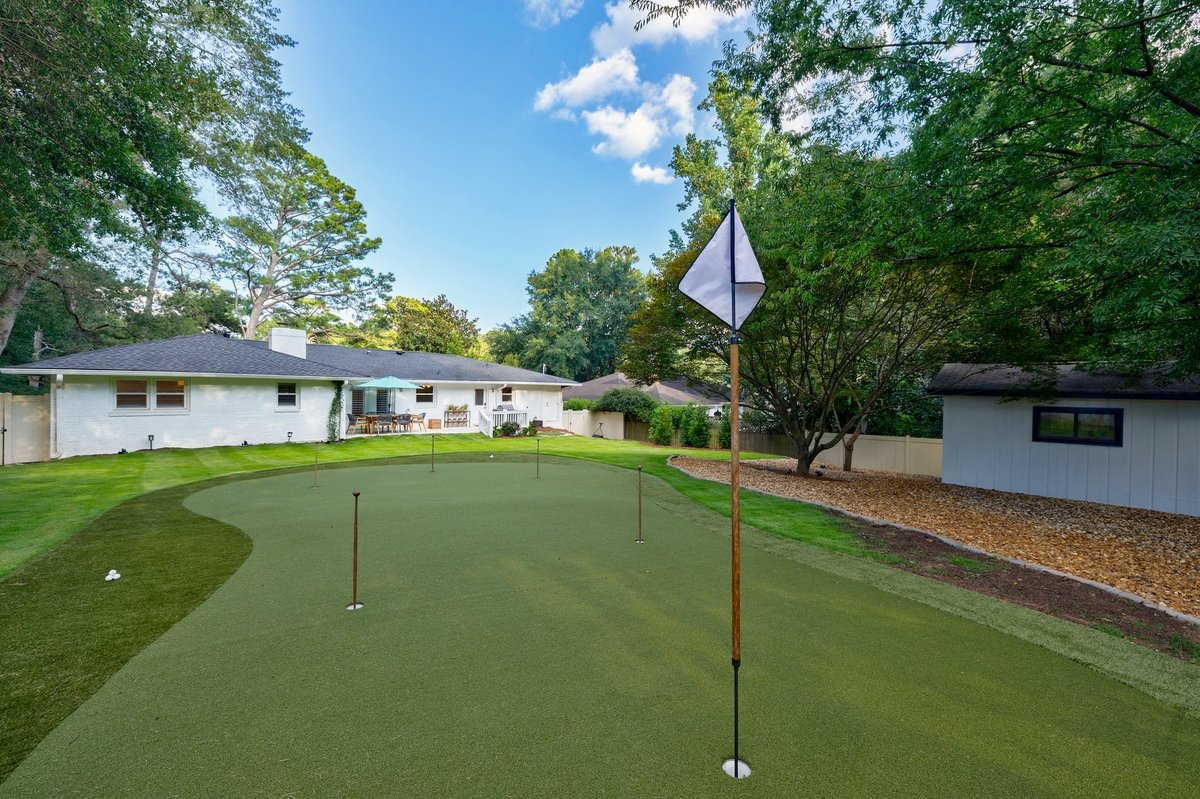 In the heart of Buckhead‘s Pine Meadow neighborhood, this recently renovated, three-bedroom bungalow offers both indoor and outdoor spaces focused on luxury, leisure, and self-care at its core. Meticulously transformed into a golfer’s paradise complete with a professionally installed putting green and tee box, this home is a place where residents can retreat to reduce the stress of daily demands and nurture their mental health through intentionally designed living spaces.