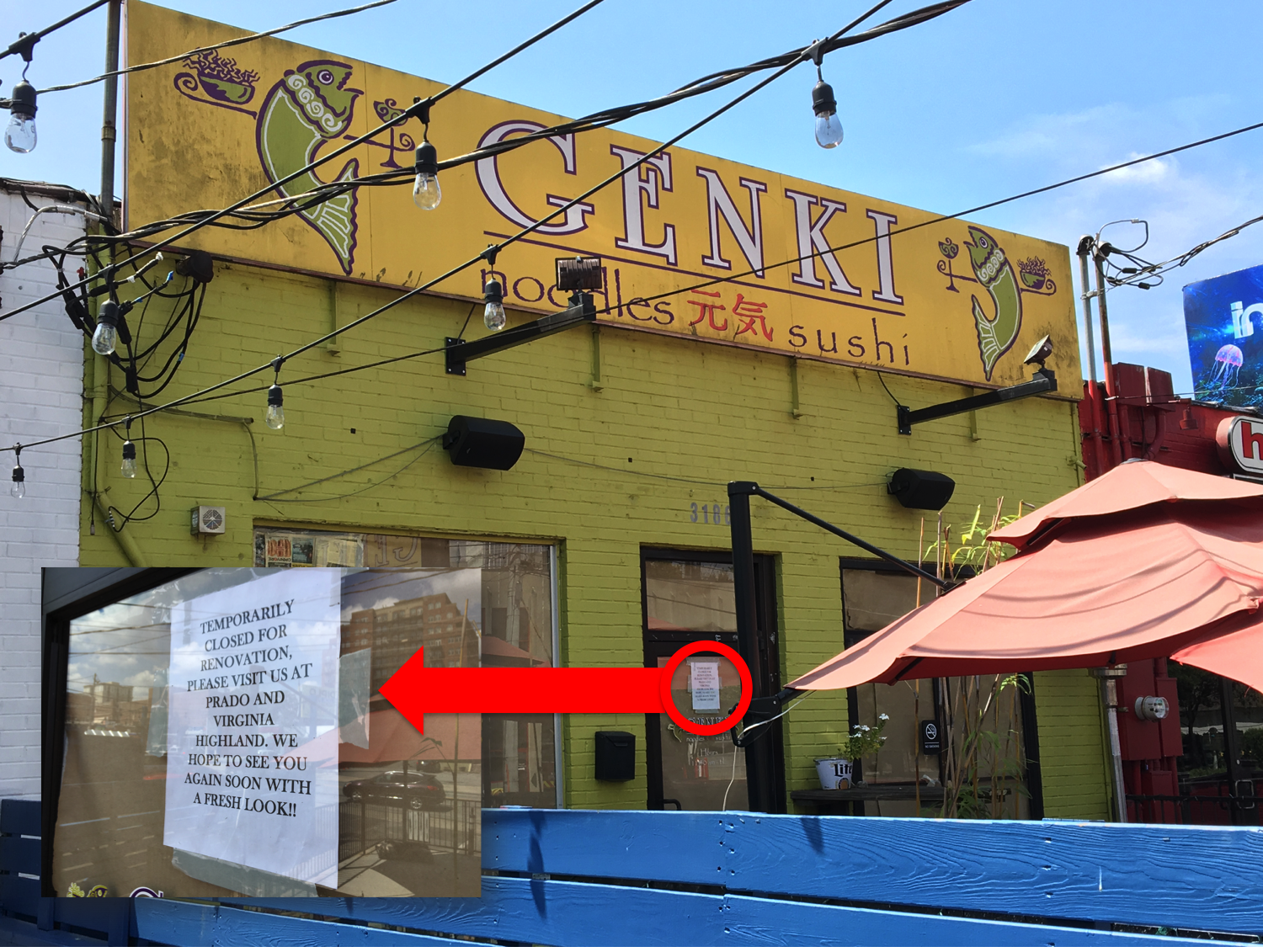 Reid M. Zeising, the owner of Genki, in an email to What Now Atlanta Monday said the renovations were “not newsworthy.”