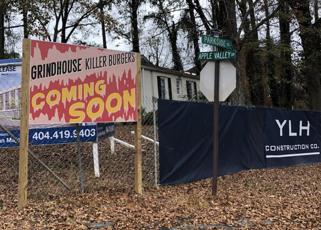 Grindhouse Killer Burgers Brookhaven is the only-known restaurant tenant confirmed for the mixed-use project, at 2573 Apple Valley Road.