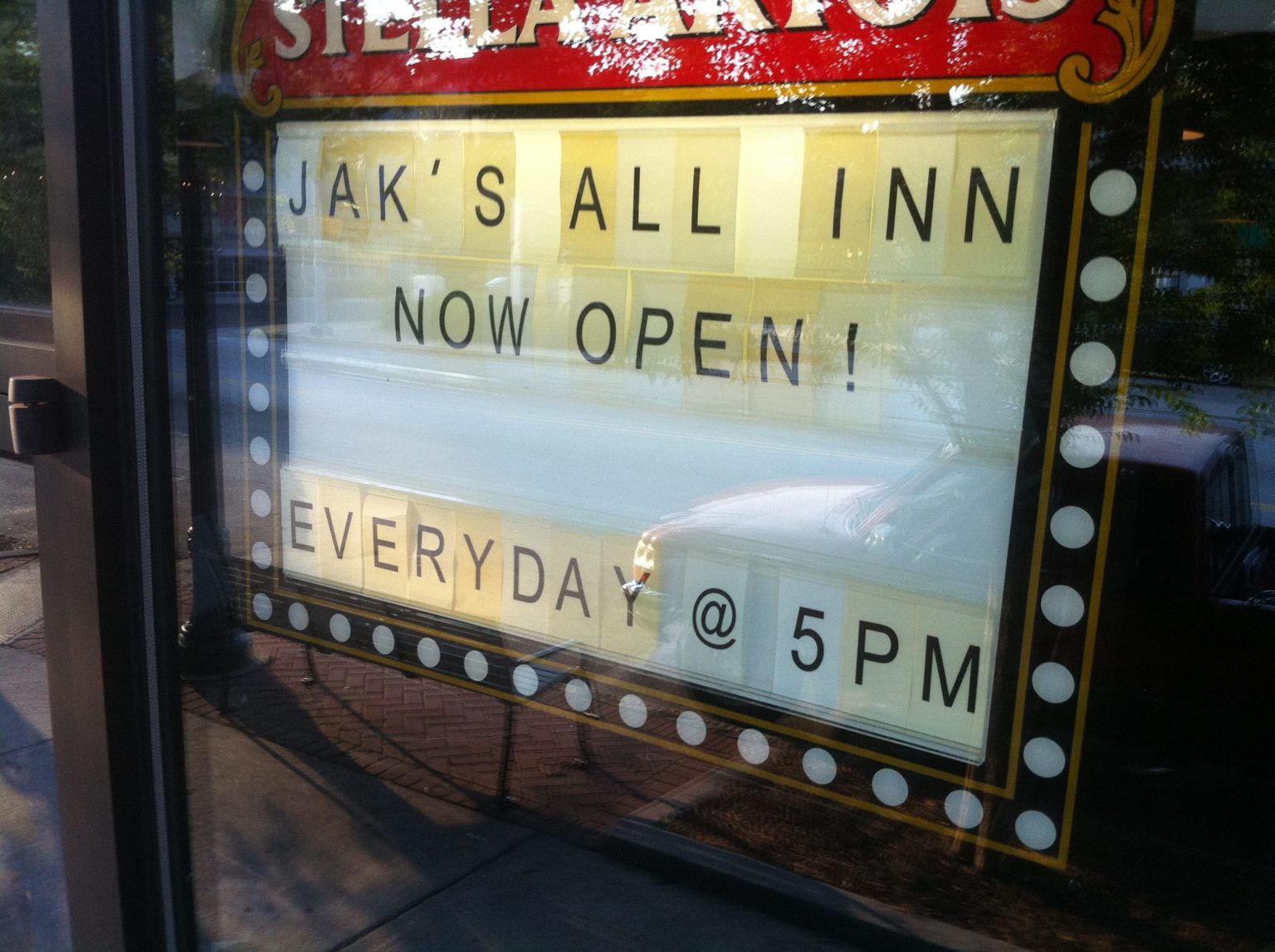 • The food at Ace’s was great, so I can’t wait to see the new menu at Jak’s. Looking forward to it!
