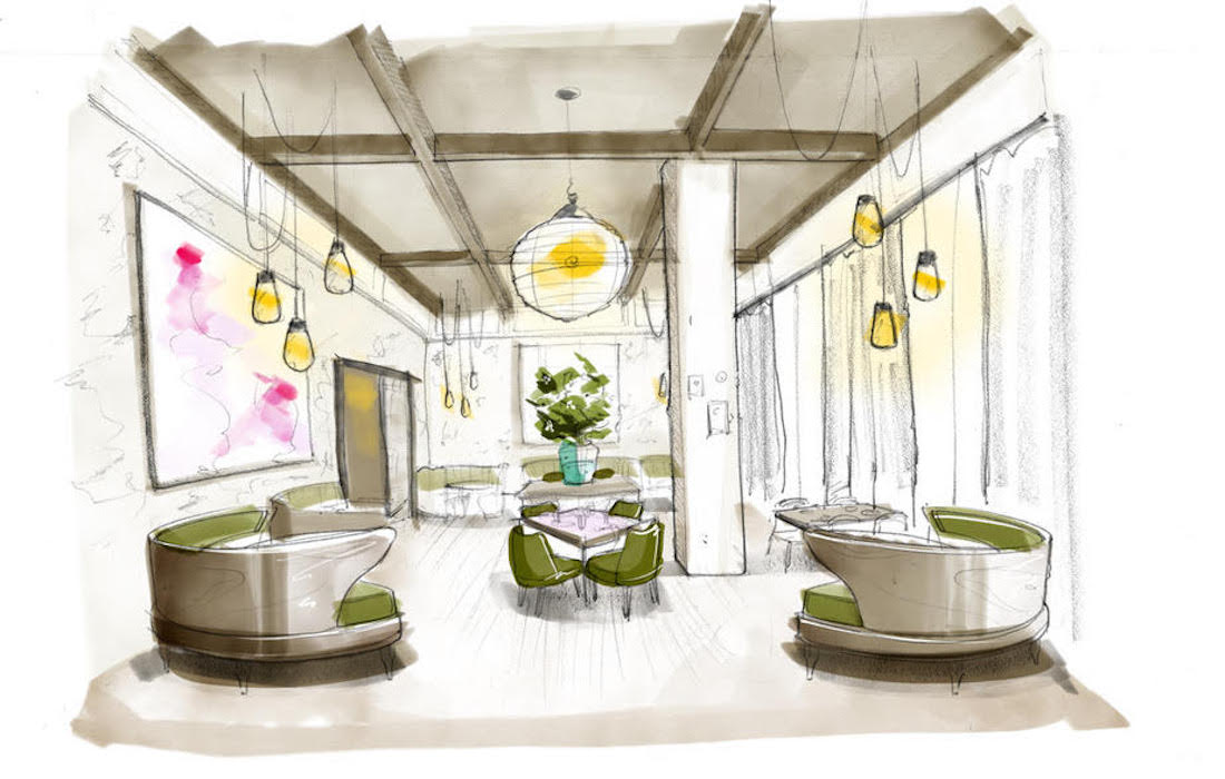 Smith Hanes Studio will oversee the design of the 4,000 square-foot space. Early renderings include organic textures, wood, and a bohemian-style feel.
