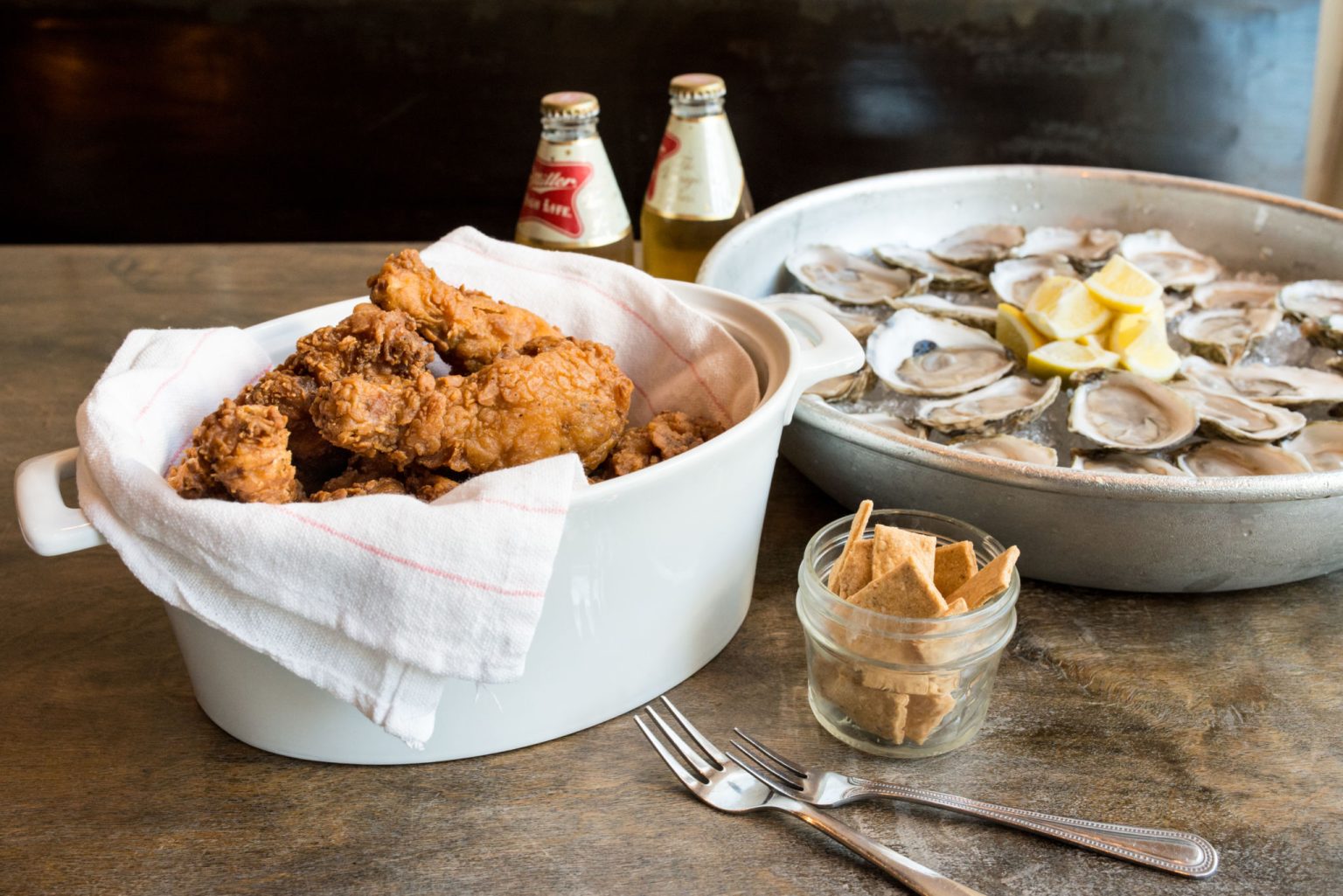 The menu features fried chicken (served house fried, hot or sweet), oysters, snacks and larger entrees complete with al carte sides.