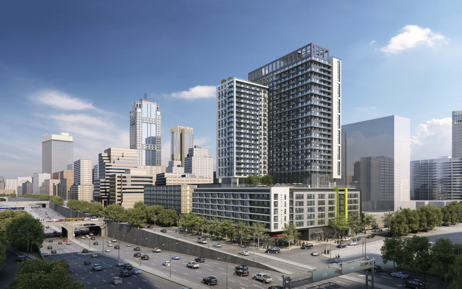 Modera by Mill Creek – Midtown, located at the intersection of 8th and Williams Streets, across from the NCR’s new headquarters, includes 435 apartment units along with 12,000 square feet ground floor high-end restaurant and retail space.