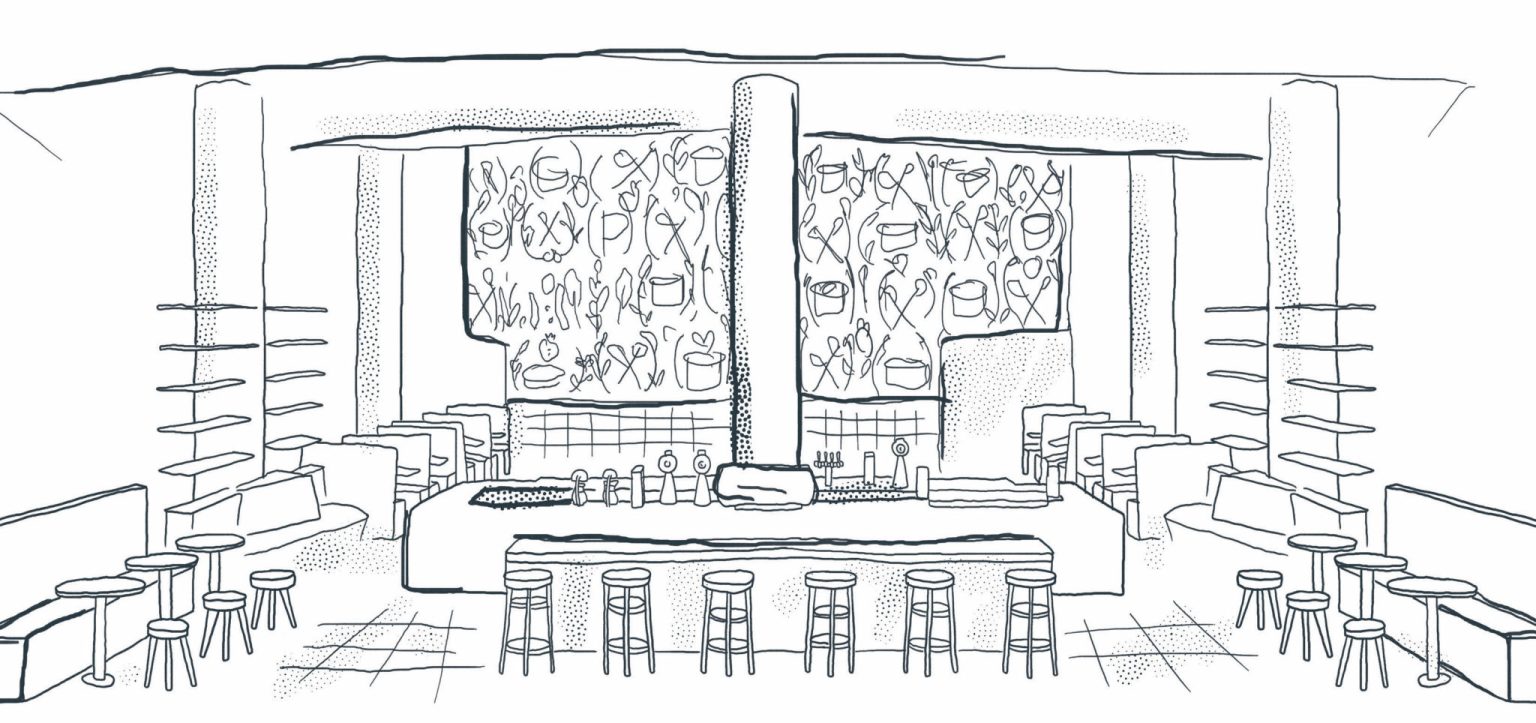 Inside will be a coffee counter for orders to go and a full-service restaurant with tables and booths.