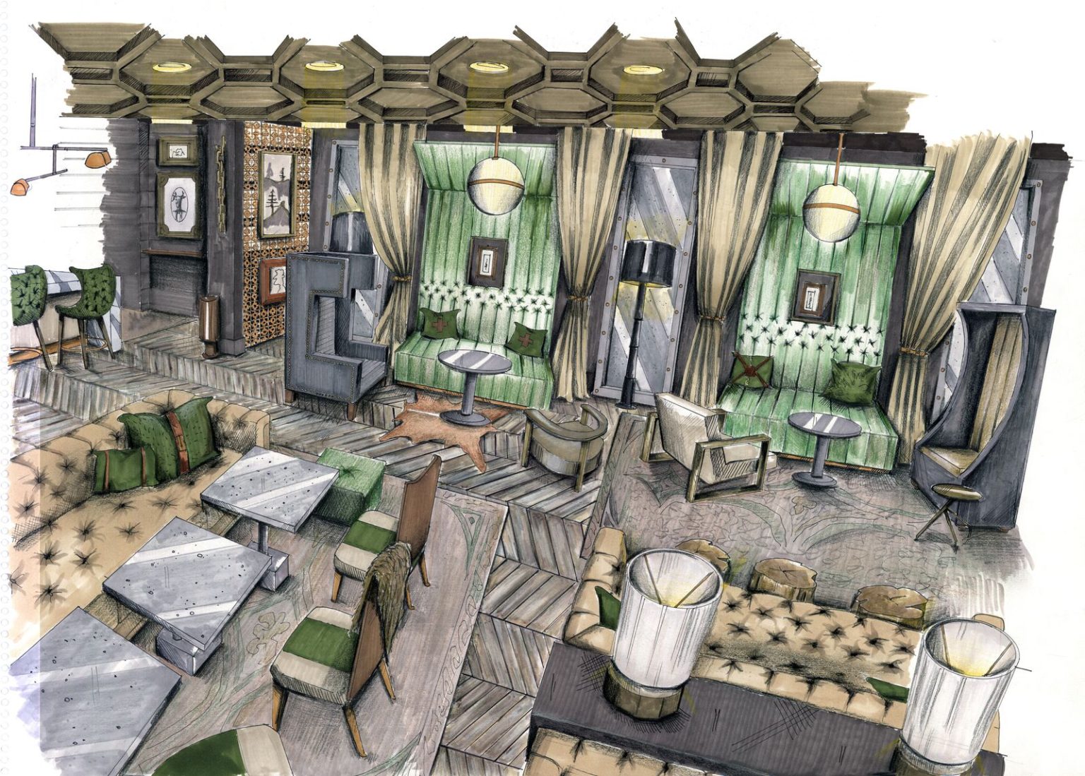 Missy and Kristin Koefod, the couple behind 18.21 Bitters in Ponce City Market, this week unveiled renderings for their forthcoming cafe and lounge, The James Room.
