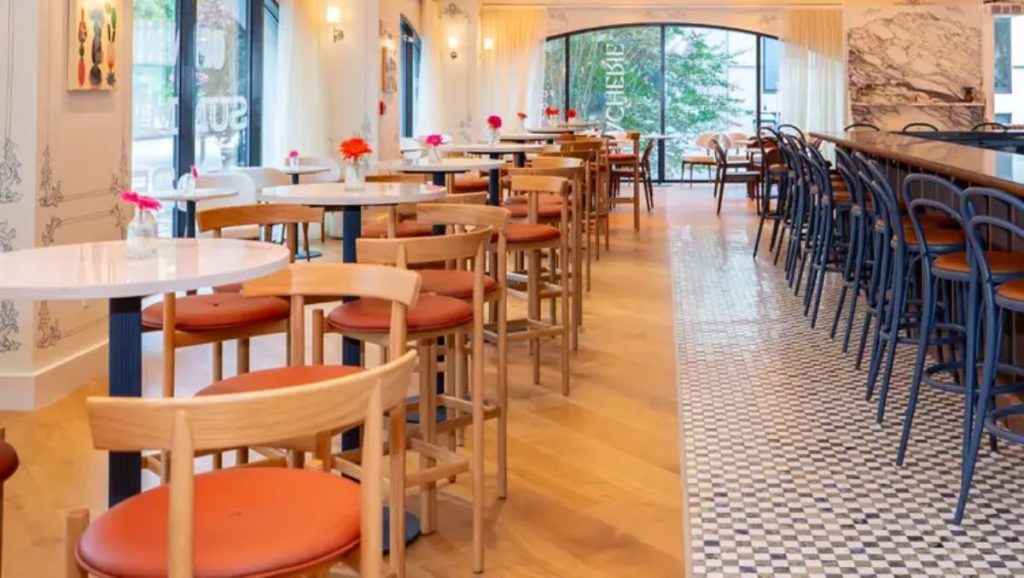 The Peacherie will eventually feature three food stalls. Discourse Eatery and Ninja Way Express will open first, with a third food stall opening later. The French restaurant and bar offers indoor and outdoor seating for up to 130 guests. The brasserie serves French classics with modern twists in a light-filled dining room with large bay windows.