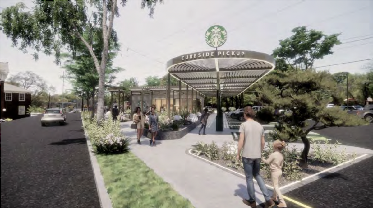 Starbucks Corp. is planning a new location in East Atlanta Village with curbside pickup and a walk-up window.