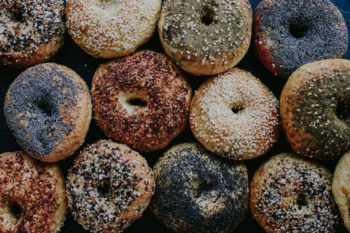 Bagel toppings offered include both traditional and unusual choices: Everything seasoning, dried onion, poppy seed, sesame seed, za’atar, or plain.