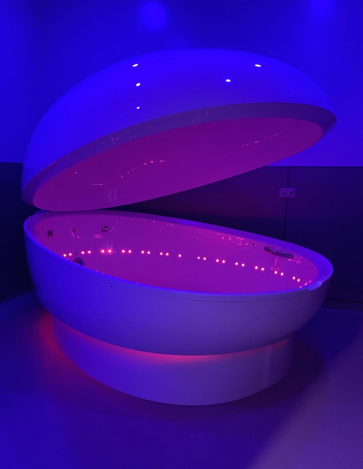 Munn shipped the four float tanks at his 3655 Roswell Road facility from Float Spa, a company based in far-off Budapest. Their clam-shaped float pods are the only sensory deprivation tank model available that entirely drains the water within between each user, running it through three micro-filter tanks and treating it with two bursts of UV light before introducing it back into the receptacle.
