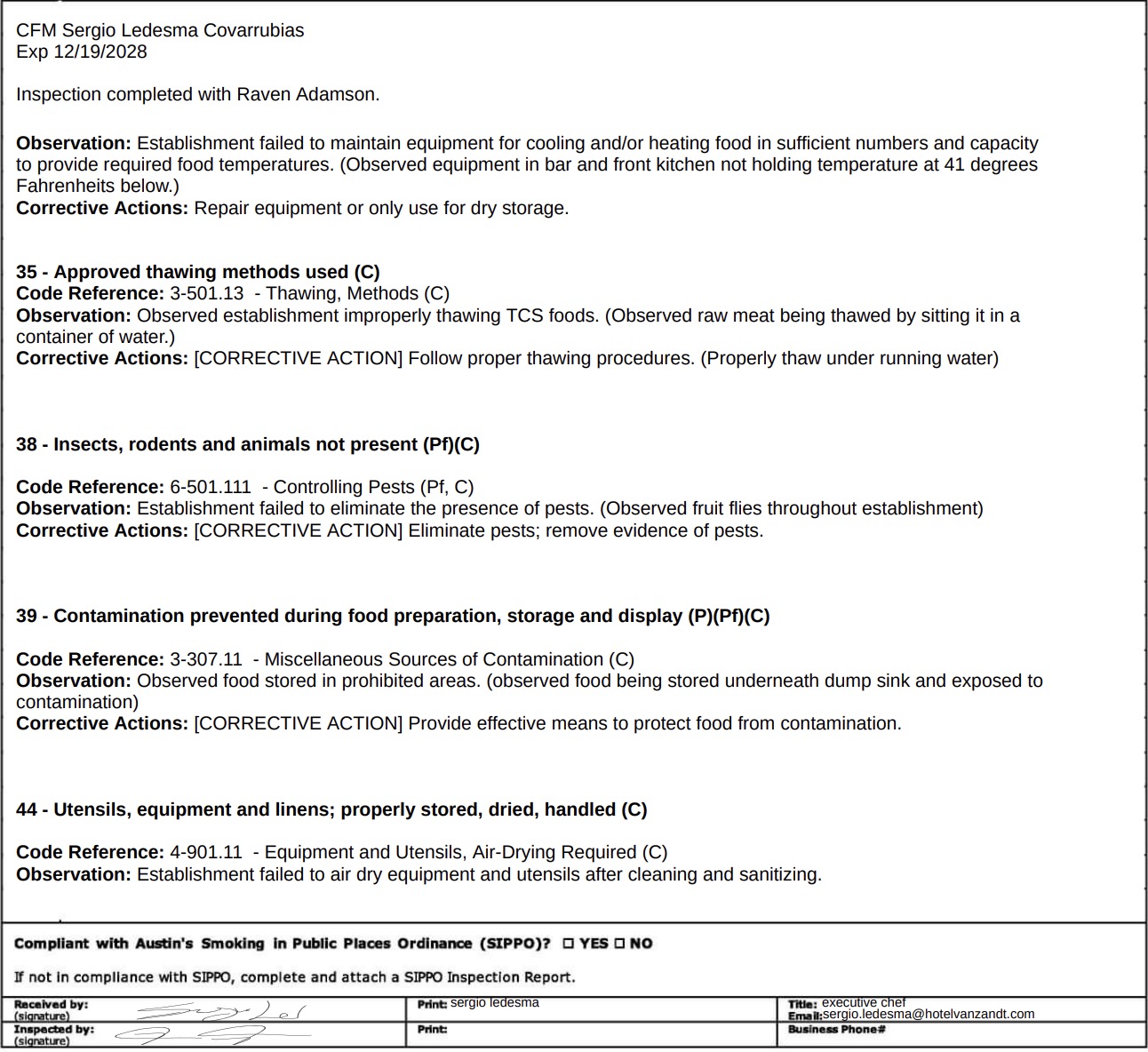 - The report said in-house sauces stored in the walk-in cooler were held past their expiration dates.