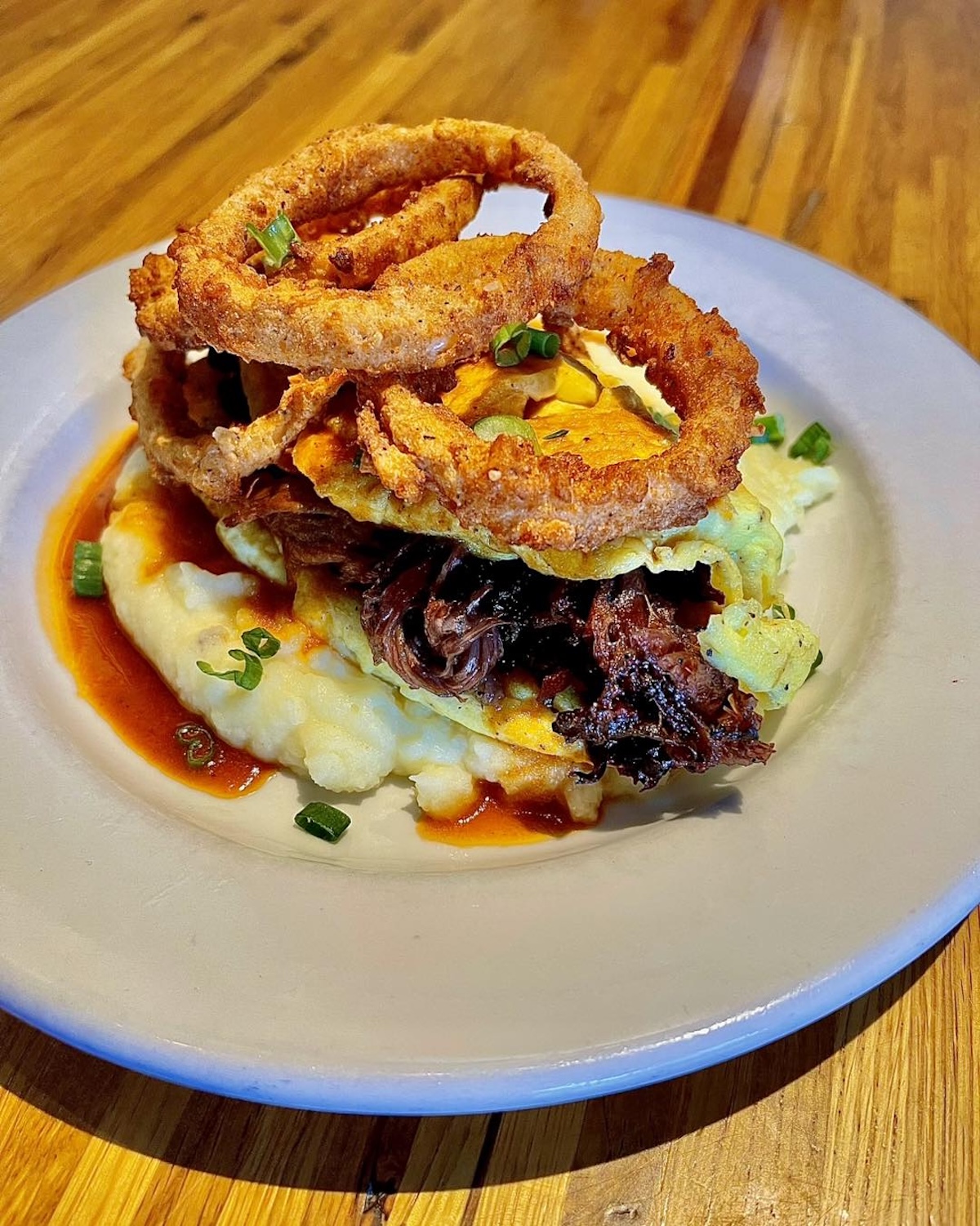 The Phoebe’s menu features categories like Rise & Shine, a selection of breakfast choices like Biscuits & Gravy, Bananas Foster French Toast, and ricotta buttermilk pancakes. Then there are Sandwiches & Burgers like the Brisket Sandwich, the Crab Cake Club, the Diner Burger, and the Fried Green Tomato BLT. There are also Barbecue choices like the Brisket Benny and the Brisket Burrito.