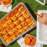 Drinks feature creative cocktails, including “The Parent Trap” with chili-ginger–infused Bulleit Bourbon, strawberry shrub, lemon juice, prosecco and strawberries; “Honey I Shrunk the Kids” with Basil Hayden Bourbon, honeydew boba powder, Licor 43, muddled oranges and a dehydrated orange wheel; and “You’re Killin’ Me Smalls” with housemade blueberry limoncello, lemon juice, soda and a lemon wheel.