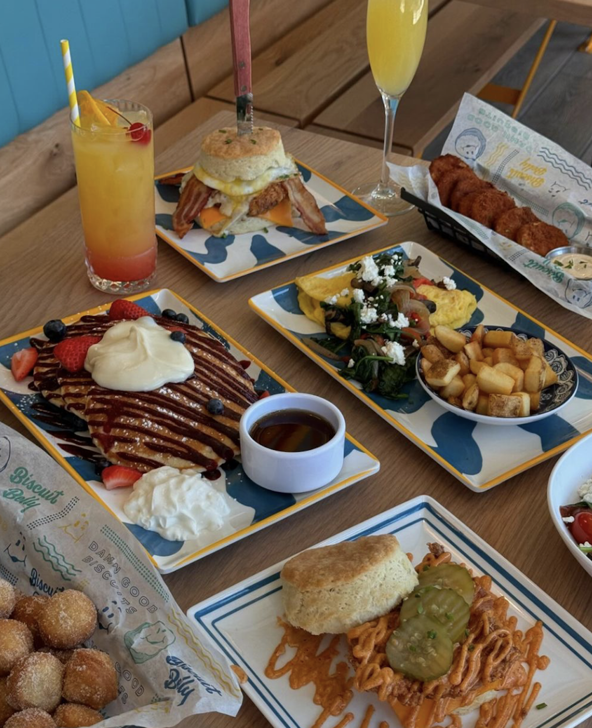 The brand is known for its biscuit-centered menu, featuring biscuit sandwiches, biscuits and gravy and shareable plates like bonuts, or biscuit doughnut holes. They also serve classic breakfast items like eggs and pancakes as well as lunch sandwiches. Biscuit Belly emphasizes that its biscuits are scratch-made and perfected by acclaimed chef Tavis Rockwell.