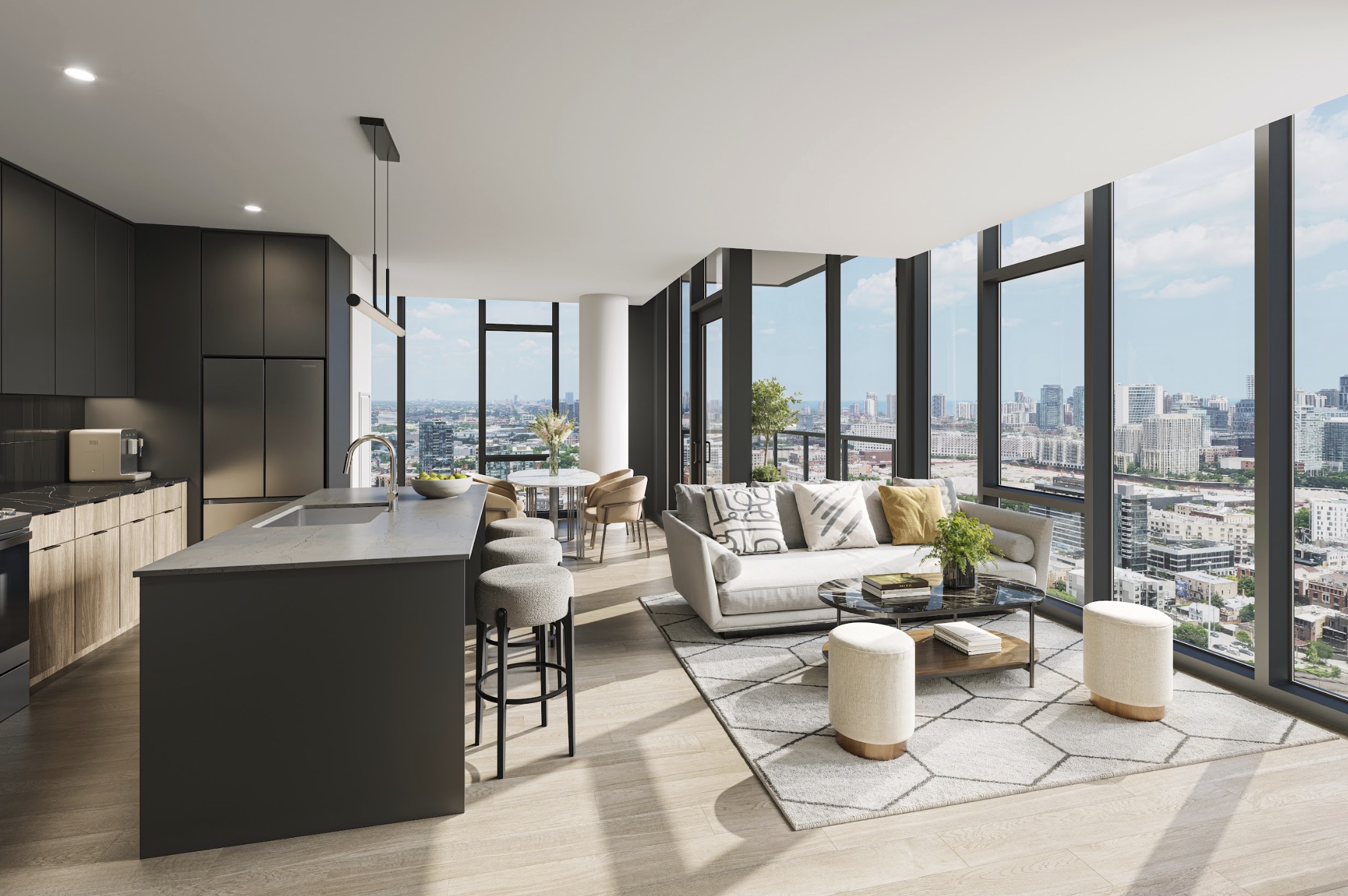 Rendering of a living room in Pearl Fulton Market (Image credit: Courtesy of Antunovich Associates, © Bogza, Inc.)