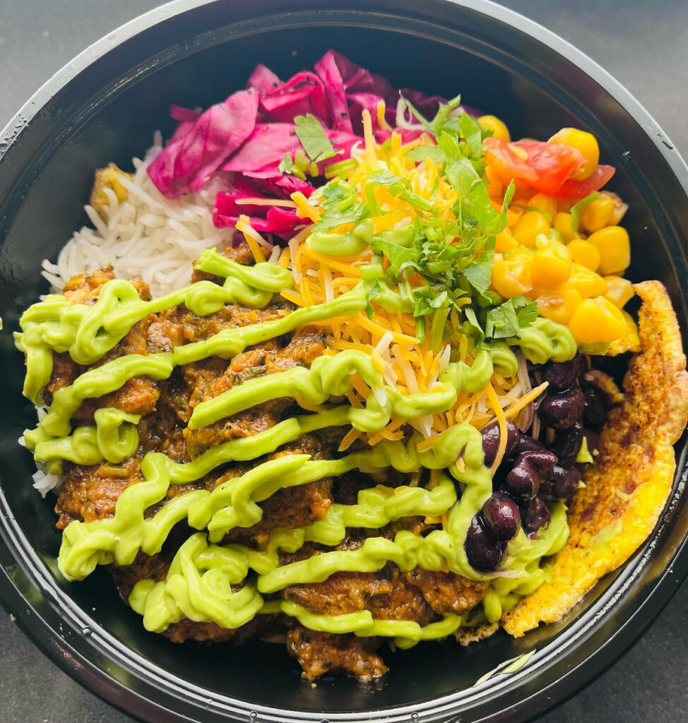 Each bowl or wrap includes the option to add on items such as lettuce, cucumber slaw, and pickled cabbage, with sauce choices that include curries, chipotle, tandoori ranch and more. Other menu offerings at the eatery include wings, a chicken lentil soup and sides such as masala fries.