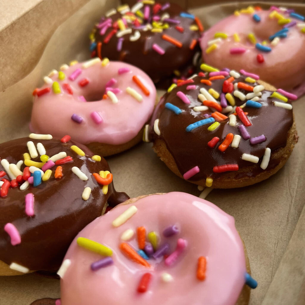 Besides offering cake donuts in classic flavors like vanilla topped with glazes in chocolate or vanilla, or rolled in cinnamon sugar, customers can also opt for a bit of whimsy with the cake donuts also available topped with pink vanilla or chocolate glaze and rainbow sprinkles. Besides offering the conventional donut flavors, what really sets the donuts apart is that they’re all vegan and gluten-free.