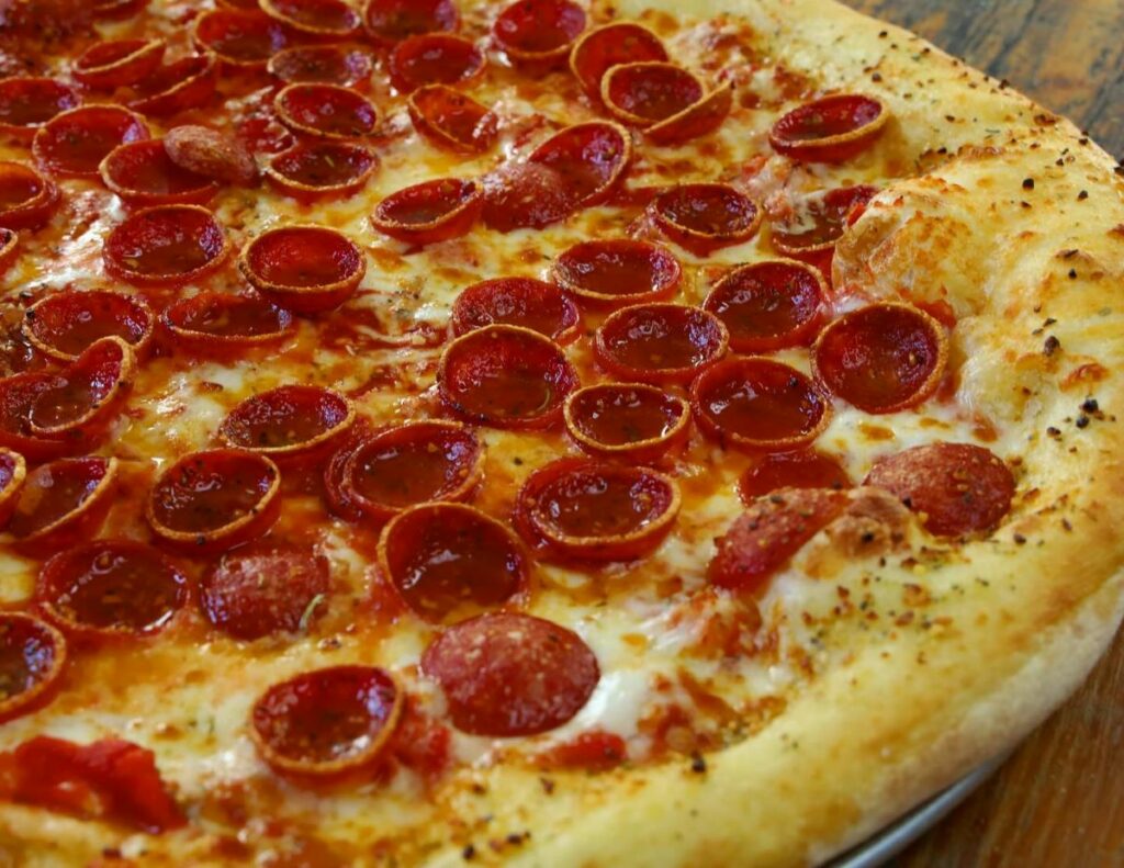 The pizza by the slice menu options include pepperoni, cheese and mushroom slices, as well as plant-based slice options. There are also whole pies available to feed a crowd, such as the Mikey’s Favorite, a pie topped with pepperoni, mushrooms and banana peppers, or the Weggie, loaded with green peppers and mushrooms and the P.M.S., pepperoni, mushroom and sausage.