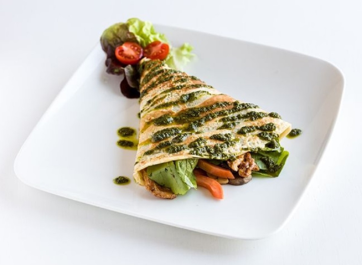 The Popeye filled with baby spinach, tomato, mozzarella, feta cheese, and feta dressing, and the Viva La Crepe with grilled chicken breast on a bed of lettuce, portobello mushrooms, cheese, tomato, and pesto dressing are just a couple of savory selections.