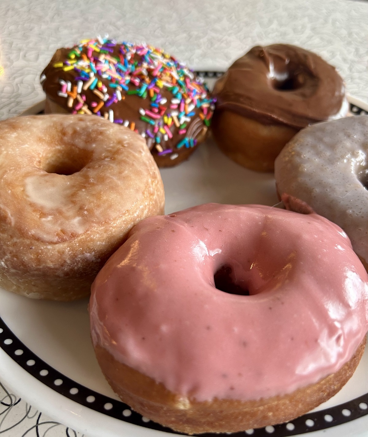 Parker has researched and developed a vegan, yeast-raised, gluten-free donut recipe. Some yeast donut flavors include traditional glaze and chocolate frosted, as well as playful flavors like Maple Frosted, Matcha Ginger, and Earl Grey Lavender. Diners can grab a cake donut in flavors of blueberry with lemon glaze and red velvet with cream cheese frosting. Other donuts will be filled with raspberry or cherry, among other flavors.