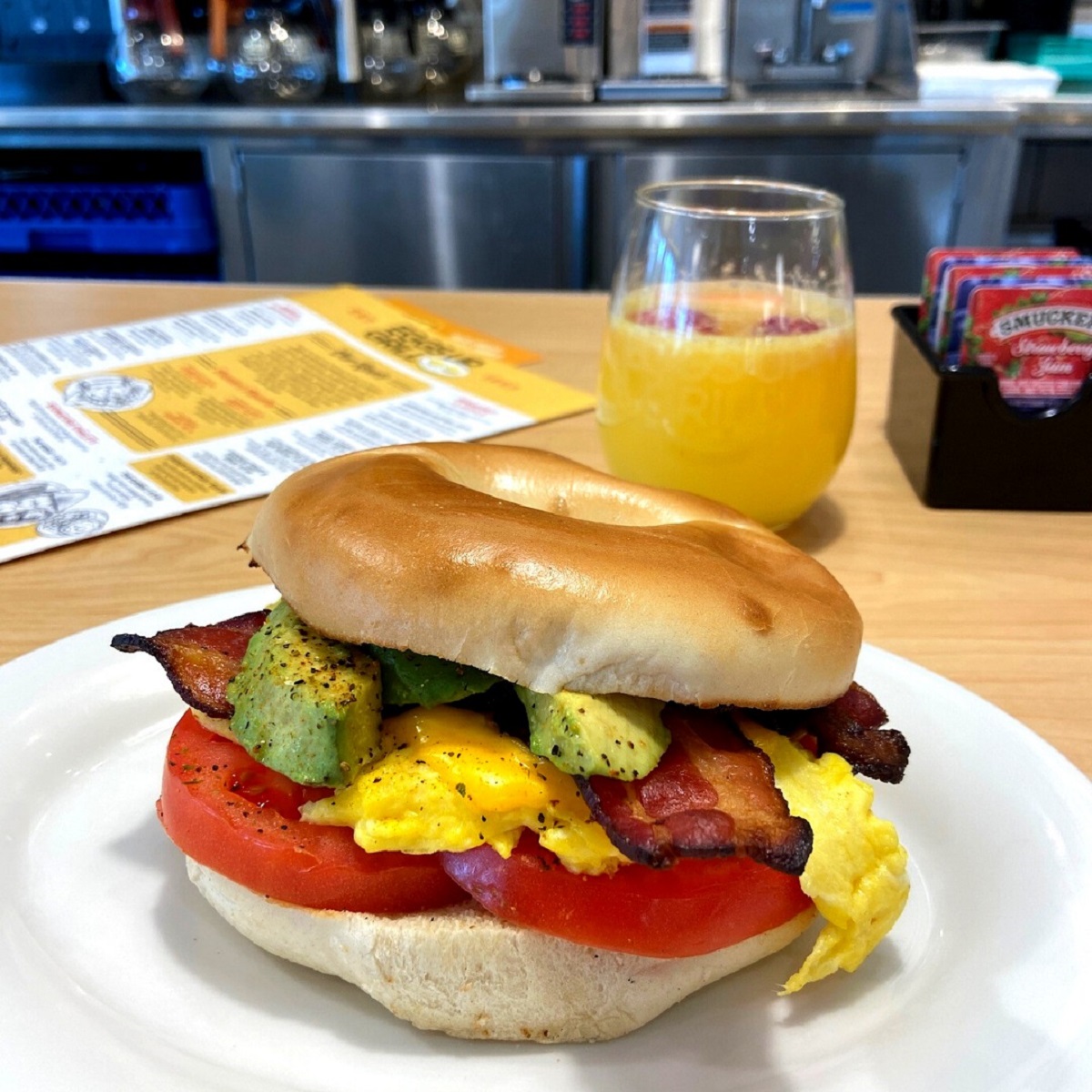 The Eggs Up Grill menu features breakfast sandwiches, omelets, pancakes, and brunch bowls including shrimp and grits. Burgers, sandwiches and wraps, and salads are also available to diners. Guests can savor a freshly brewed coffee or enjoy a mimosa or two with their breakfast, brunch, or lunch.