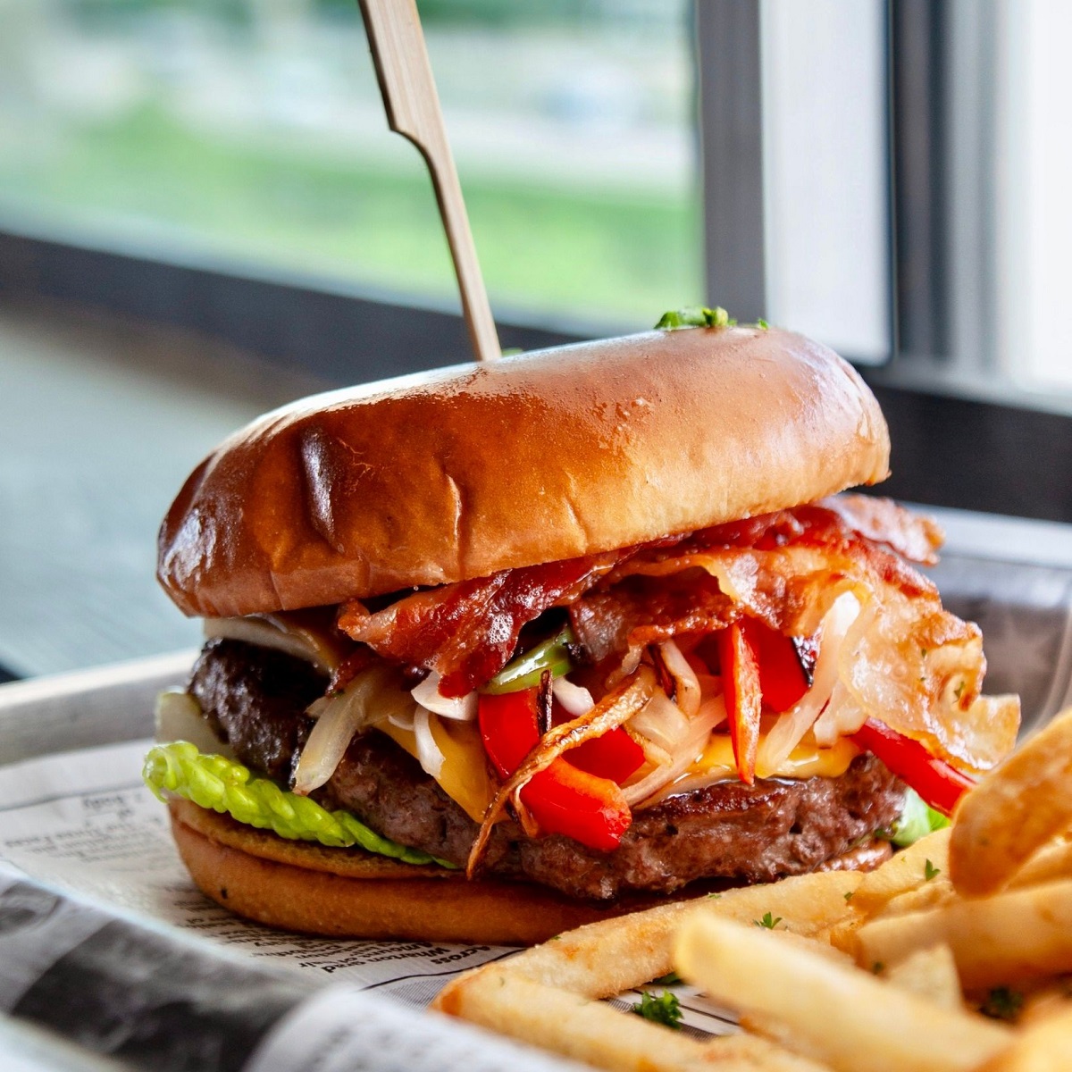 The G.O.A.T menu features unique appetizers such as fried deviled eggs, plus cheese curds, meatballs with marinara, and chicken wings. Guests enjoying a cold beer or signature cocktail while watching the game can choose from a selection of flatbreads, burgers, and salads. If you’re in the mood for steak or salmon, G.O.A.T has that, too.