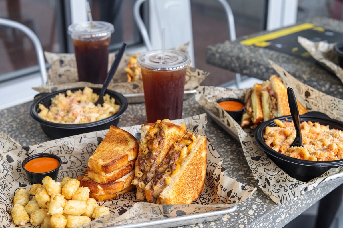Other menu options include grilled cheese sandwiches and Tacoroni, which can be customized by diners to include mac and cheese and other ingredients stuffed inside a nacho-flavored taco shell. Sides of Mac & Cheese Bites, broccoli and cheese, tomato soup, and tater tots are on the menu. Vegan and keto options are also available.