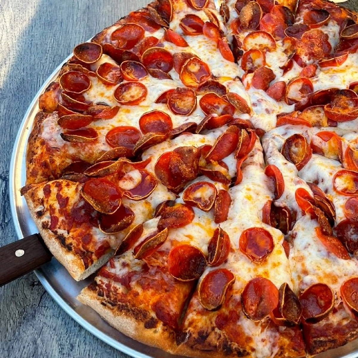 The brand is known for its crispy, curly pepperoni and 20-inch Mountain-sized pizzas with dough made fresh each day. The menu features signatures pizzas such as Mt. Veggiemore, Pineapple Chicken Luau, and Garlic Tuscan. Diners can also enjoy classic or boneless wings, salads, sandwiches, and desserts such as the Pizza Cookie or Cinnamon Dessert Pizza.