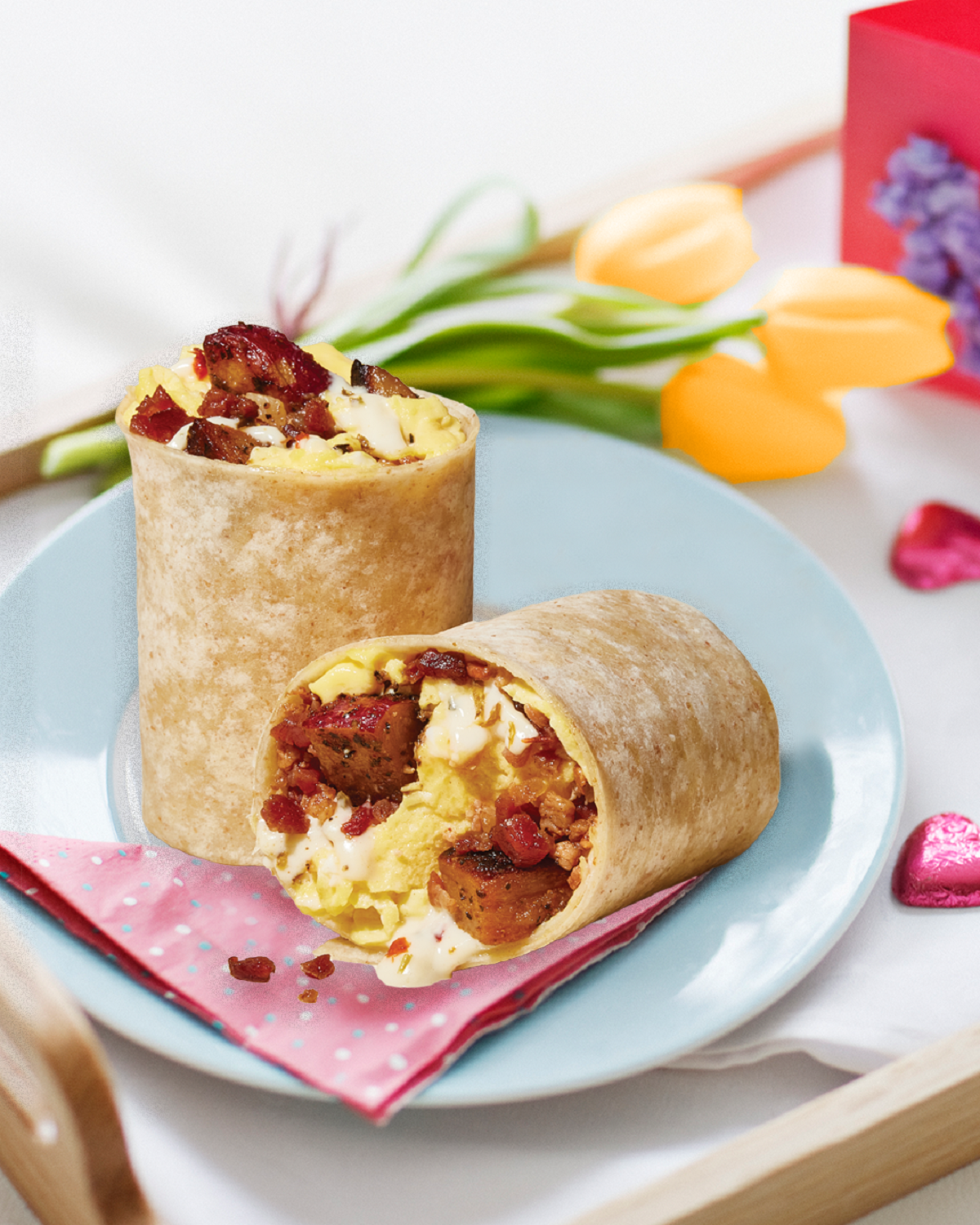 Other menu options featuring house-made dressings include the Cobb, Caesar, Greek, and Thai salads, which can all be converted into wraps. Breakfast options include burritos and bowls with eggs, other fresh ingredients, and house-made salsa.