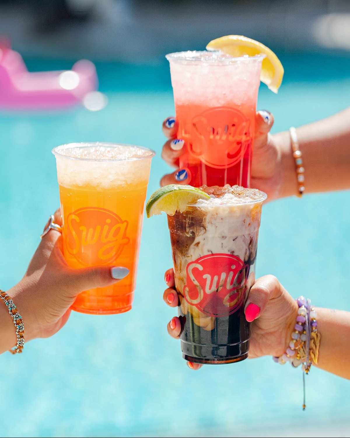 Swig founder Nicole Tanner first opened Swig in Utah in 2010, and the brand has expanded into multiple states including Texas. Swig is currently operating at 5225 West University Dr. in McKinney and in other locations across the Dallas-Fort Worth Metroplex including Burleson, Fairview, Fort Worth, and Prosper.