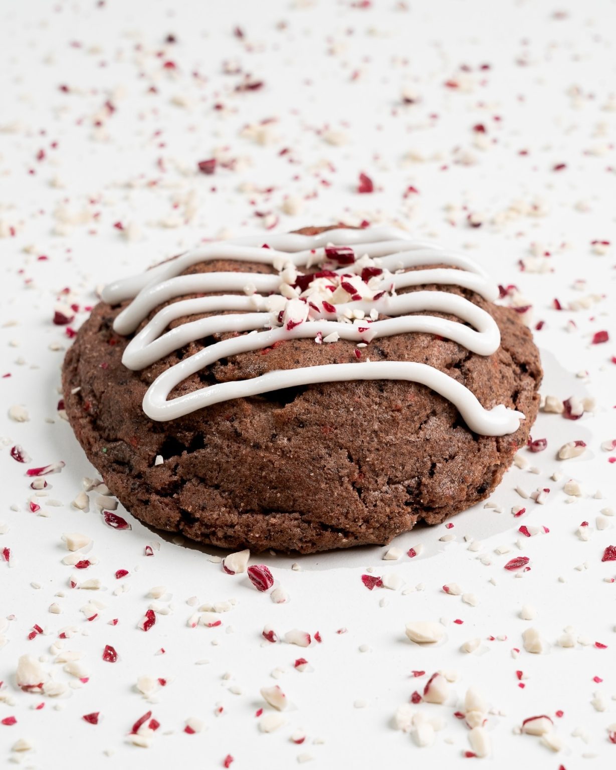 Dirty Dough serves warm cookies, stuffed with extra sweet fillings like marshmallow, caramel, or fudge. Current seasonal offerings include the Christmas Sugar Cookie, a signature sugar cookie topped with white icing and a custom sprinkle blend, and the Lump of Coal, featuring fudge dough wrapped around a cookies and cream middle and then rolled in black sanding sugar.