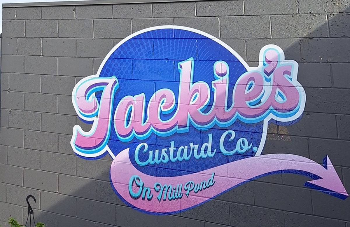 Andrea Cartier, a previous antique dealer, and Davide Beattie, who purchased the custard shop’s assets at 415 Mill Pond Lane, have renamed the business to honor Cartier’s late sister, Jackie Burke of Royal Oak. Burke died of cancer in 2001 at 39 years old. Jackie Burke did standup comedy at Mark Ridley’s Comedy Castle. She was also a mother, an artist, an actress, and a teacher. The street, Mill Pond Lane, and the natural park with the same name right around the corner resonated with Burke’s love for ponds.