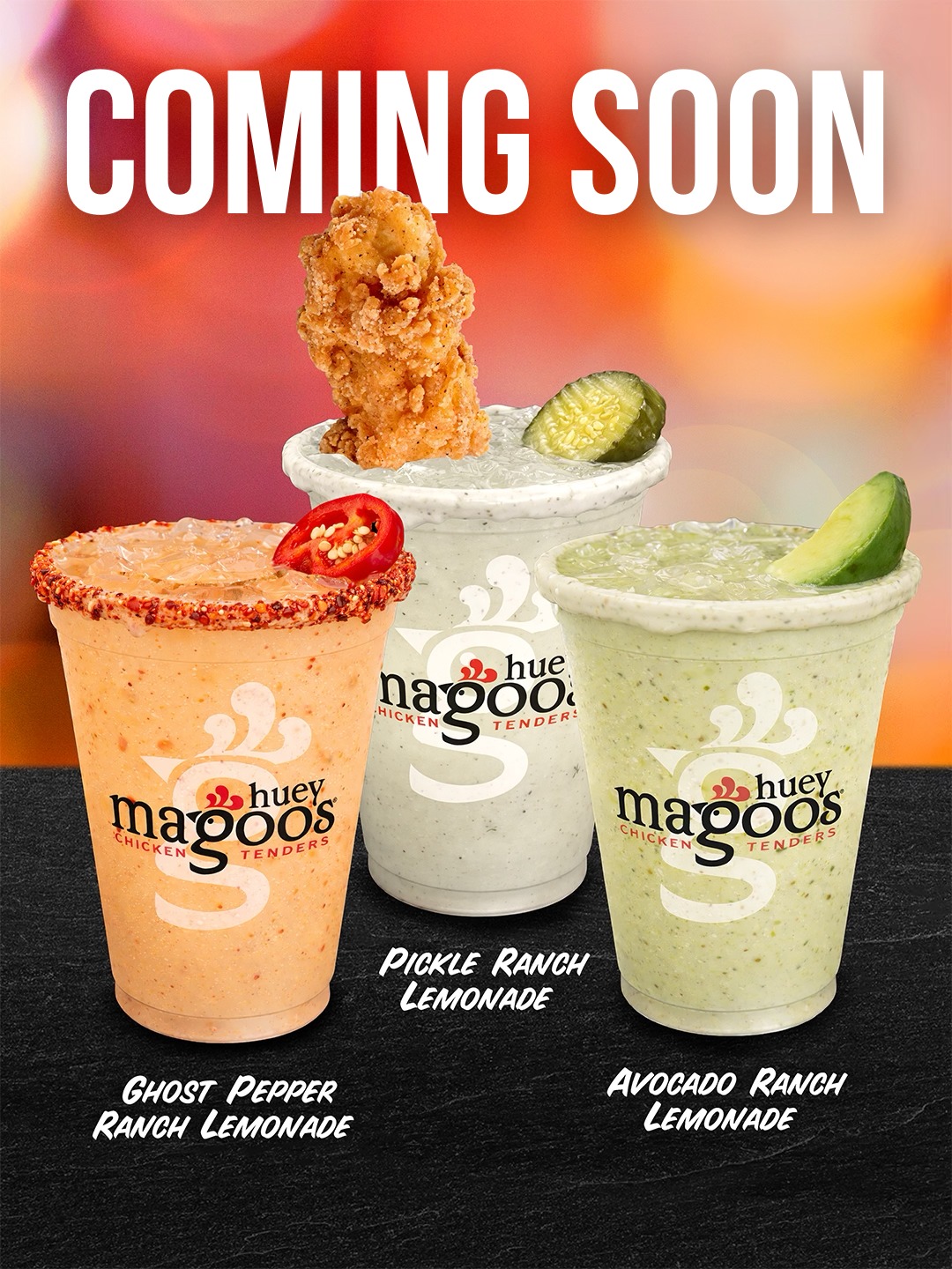 Huey Magoo's is coming soon to the Greater Houston region, just like the brand's new Ranch Flight, which features Ghost Pepper Ranch Lemonade, Pickle Ranch Lemonade, Avocado Ranch Lemonade. (Image credit: Huey Magoo's Facebook Page)