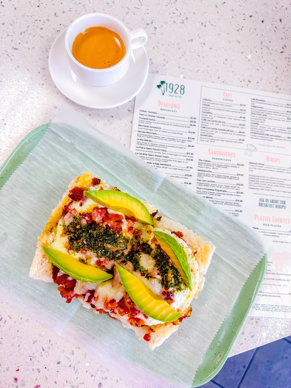 The menu features classic sandwiches like the Cuban, the Medianoche, and the Pan con Lechón. To top it off is a selection of coffee drinks ranging from the Cortadito to La Rebe (steamed almond milk with sweetened Cuban espresso, brown sugar & Becky’s secret ingredient), plus Desayuno choices like the 1928 Completa (2 fried eggs, 2 croquetas, 2 ham slices, side salad & Cuban tostada).